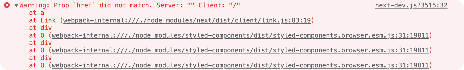 Warning: Prop `href` did not match. Server: "" Client: "/"